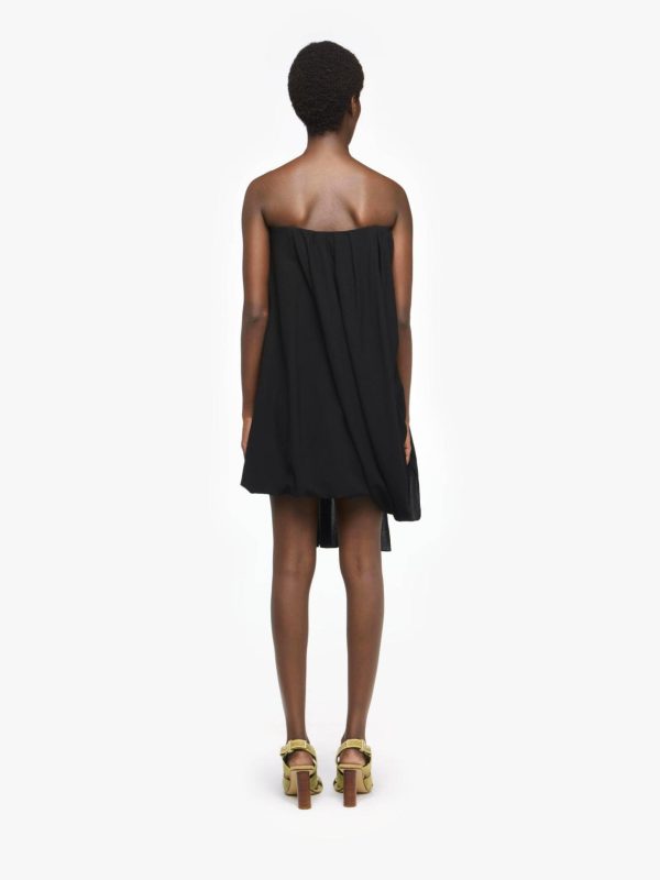 - Strapless neck dress, complete with draped bustier design